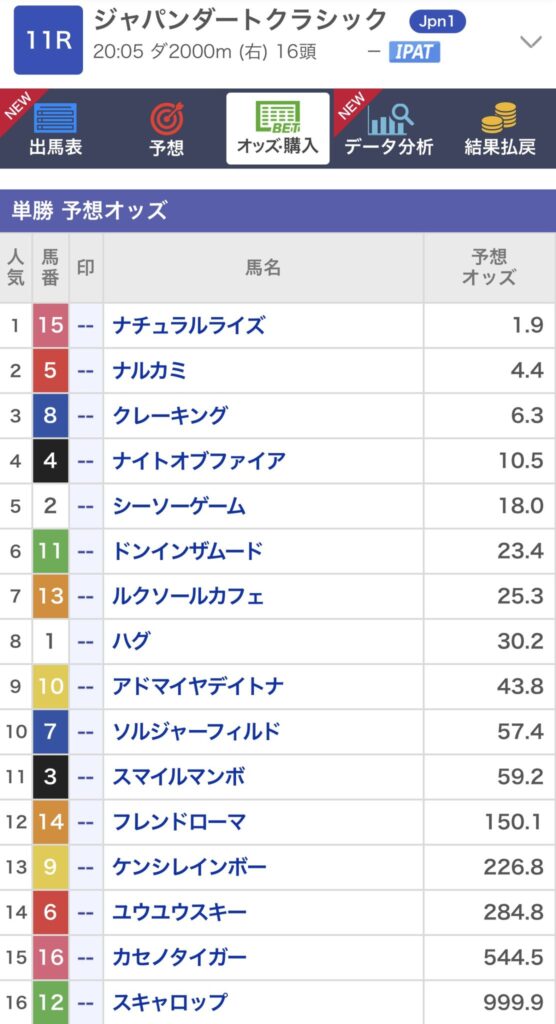 ・コース:大井競馬場 ダート2000m(右・外回り) フルゲート16頭