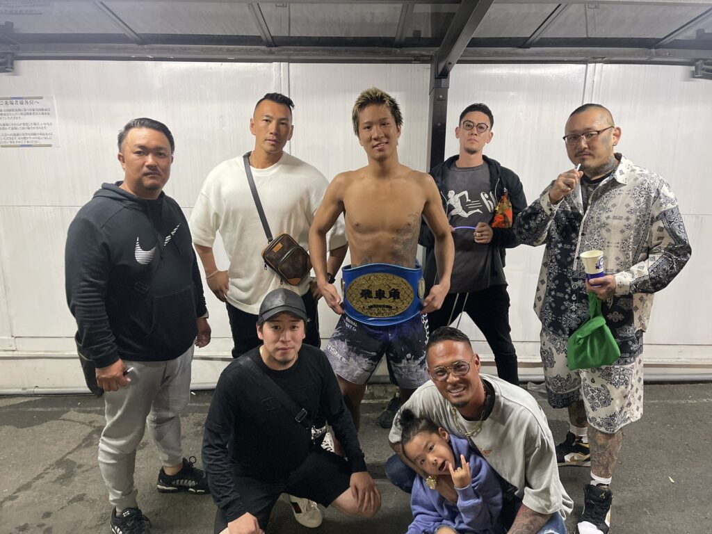 - 地下格闘技の「飛車角」でライト級第二代王者になっています