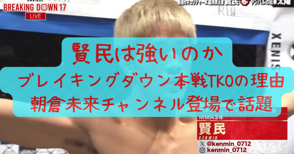 この記事を読むことで、賢民の基本プロフィールとこれまでの戦績、強さの根拠、朝倉未来チャンネル登場時のポイントを、整理して解説します。