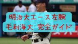 ・毛利海大(明大/投手)―最速150km/h前後の伸びのある直球とキレの良いスライダーが武器です。東都での実績が評価材料です。