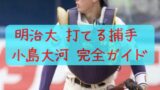 ・小島大河(明大/捕手)―強肩強打の「打てる捕手」です。リード面の成長も見られ、上位入札の可能性があります。