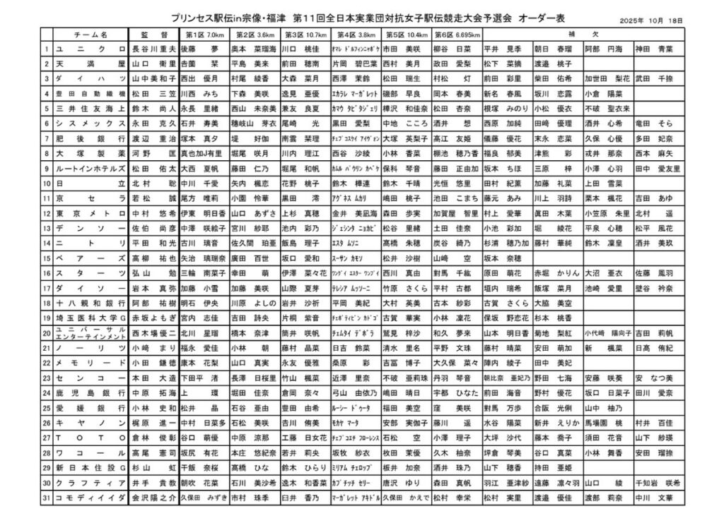 女子駅伝日本一決定戦「クイーンズ駅伝(11/23)」の統一予選会で、エントリー31チームから上位16チームが本戦出場権を獲得します。