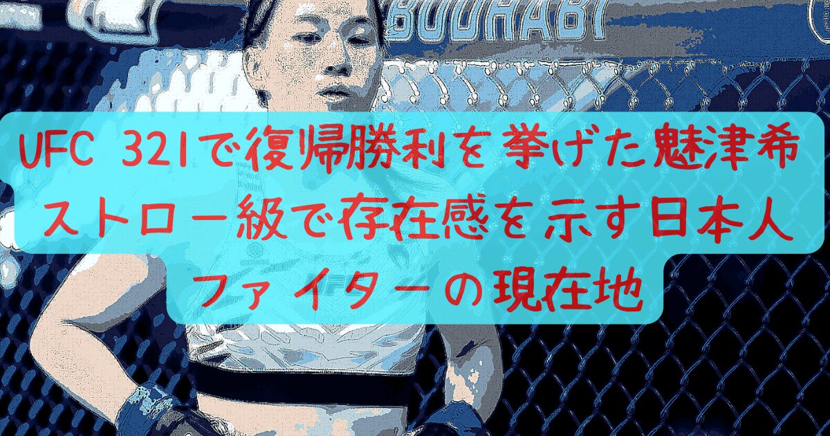 この記事を読むことで、魅津希の基本プロフィール、UFC復帰戦(日本時間2025年10月26日)の勝利内容、歩んできたキャリア、得意技術とスタイル、姉弟エピソード、そして今後の展望までを、一度で理解できるようになります。