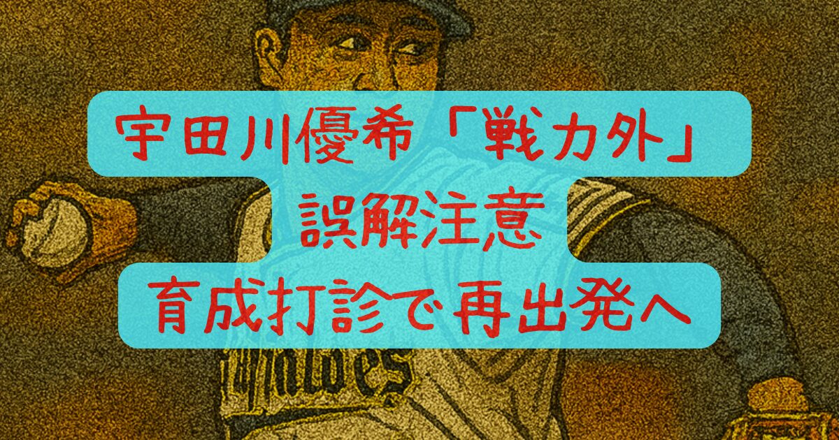 この記事を読むと、「戦力外」見出しの本当の意味、宇田川選手のリハビリ状況、今後の流れがすぐに分かります。