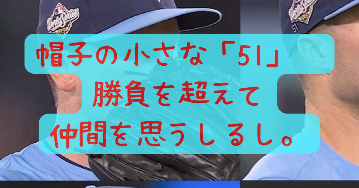 第3戦以降、ドジャースの救援投手は帽子の側面に小さく「51」を刺しゅう・記入してマウンドに上がっています。