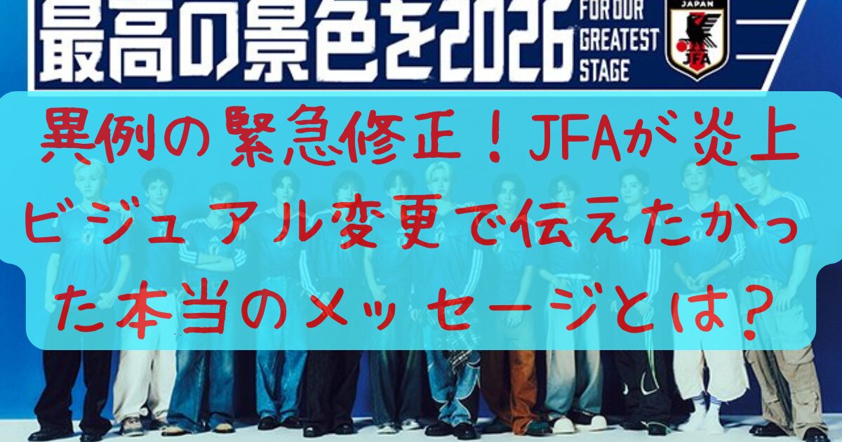 日本サッカー協会(JFA)は、2026年W杯に向けた「最高の景色を2026」キャンペーンのオフィシャルアンバサダーであるスペシャルユニット「JI BLUE」のキービジュアルを、キャンペーン発表から間もない2025年11月14日に変更すると発表しました。