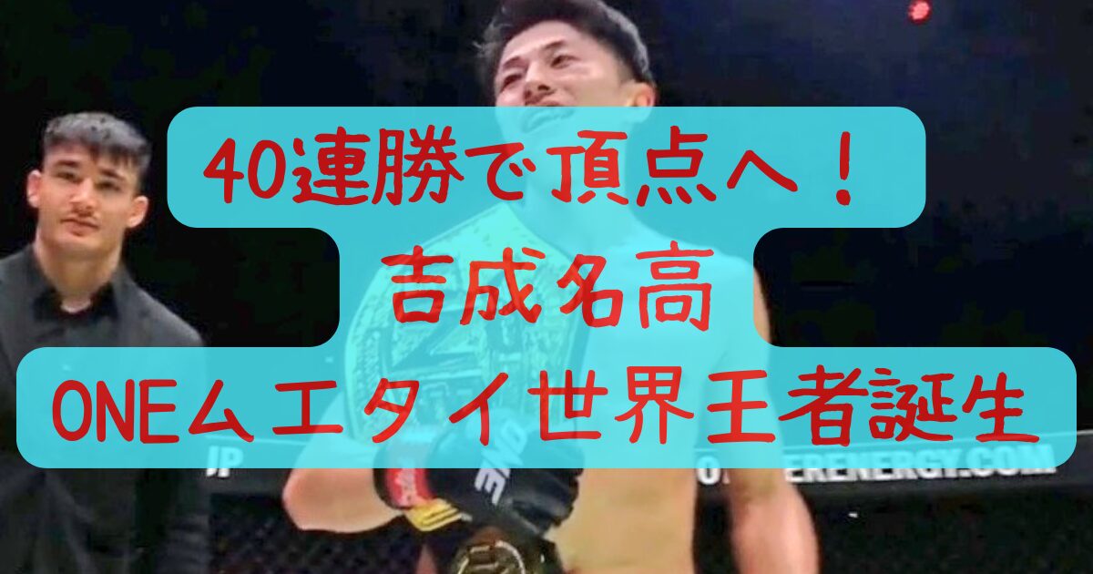 吉成名高選手が、世界最高峰の格闘技イベント「ONE Championship」において、アトム級ムエタイの世界初代王者に輝きました。
