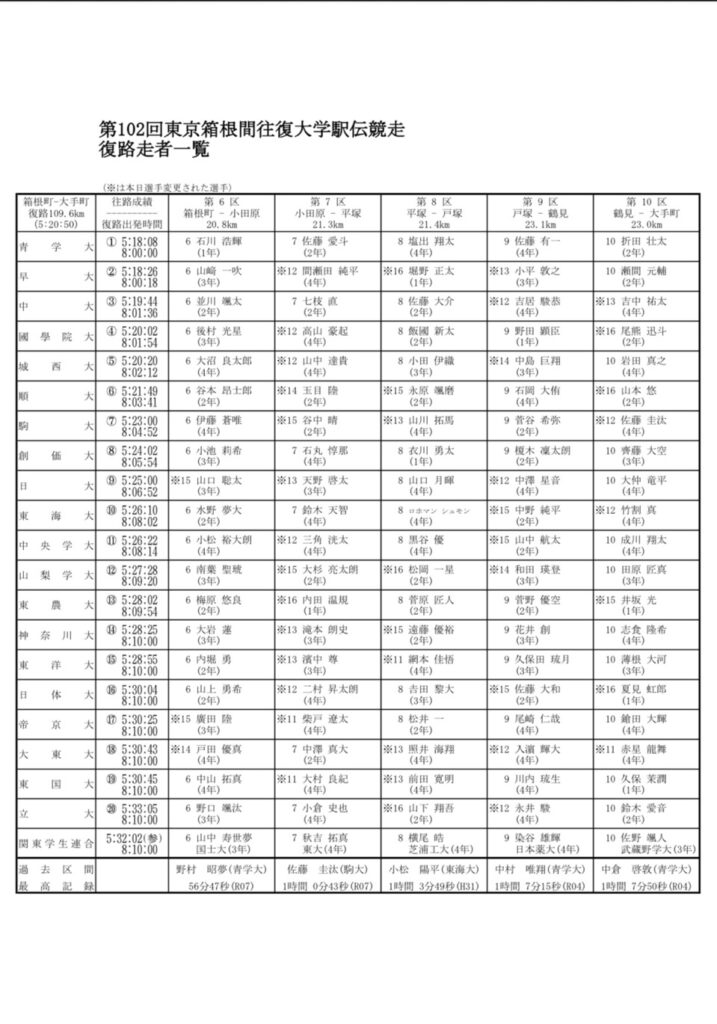 区間エントリー:1区 小山 翔也/2区 森重 清龍/3区 篠 和真/4区 村上 響/5区 安原 海晴/6区 伊藤 蒼唯/7区 植阪 嶺児/8区 坂口 雄哉/9区 菅谷 希弥/10区 新谷 倖生