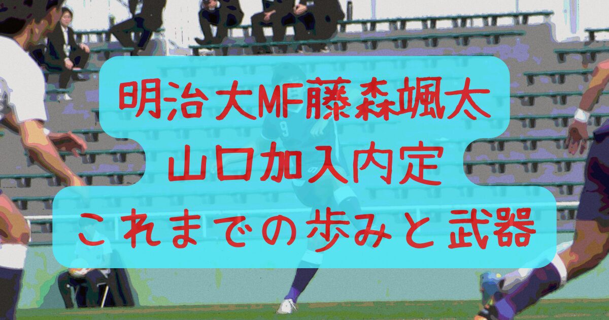 藤森颯太選手は、明治大学に在籍してきたMFで、2026シーズンからレノファ山口FCへの加入が内定している選手です。