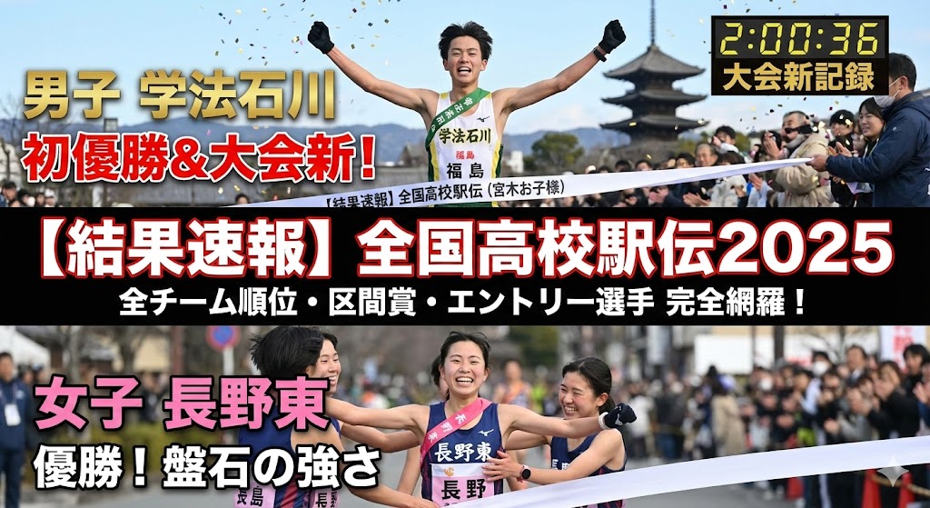 2025年の全国高校駅伝は、男女ともに実力校が順当に強さを見せる一方で、学法石川の大会新記録優勝という歴史的な瞬間に立ち会うことができました。選手の皆さん、感動をありがとうございました!