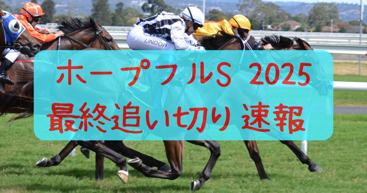 この記事では、ホープフルステークス2025の最終追い切り(主に水曜追い)の内容を速報でまとめます。新しい情報が出次第、追記更新していきますのでブックマーク推奨です。