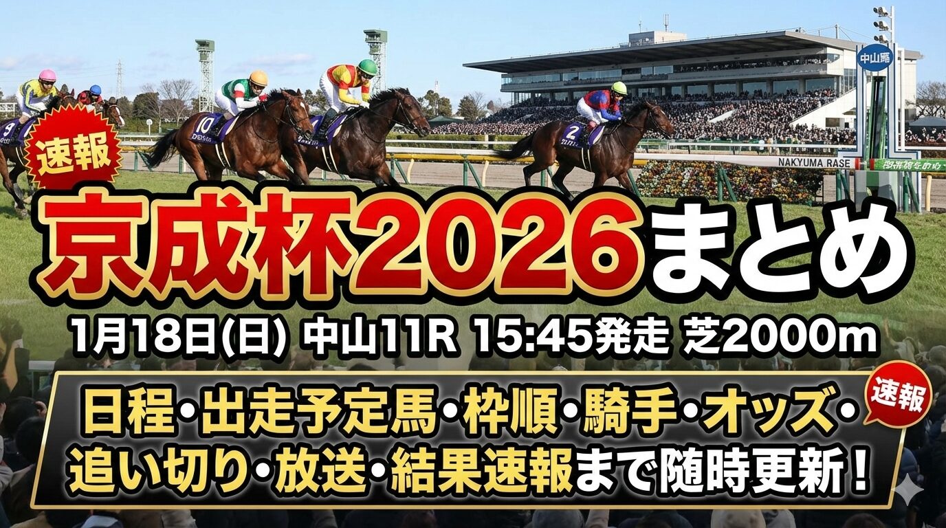 この記事を読めば、開催日と発走時刻、コースの特徴、出走予定馬、枠順、騎手、オッズ、追い切り、視聴方法、結果速報まで一気に整理できます。レース週は確定情報が出しだい、随時更新します。