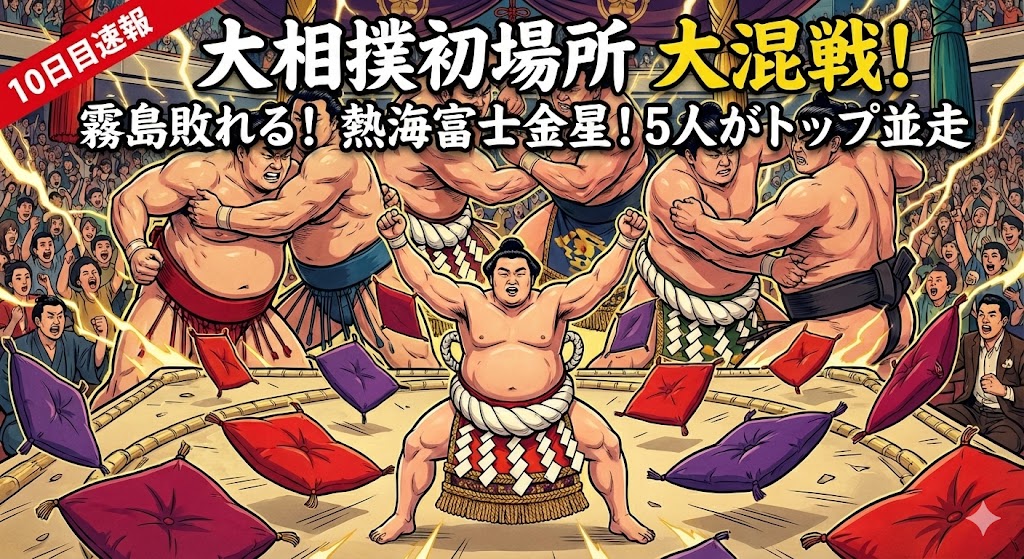 【大相撲初場所】10日目速報:霧島敗れる!熱海富士が金星でトップ並走!5人が2敗の大混戦&明日11日目の取組