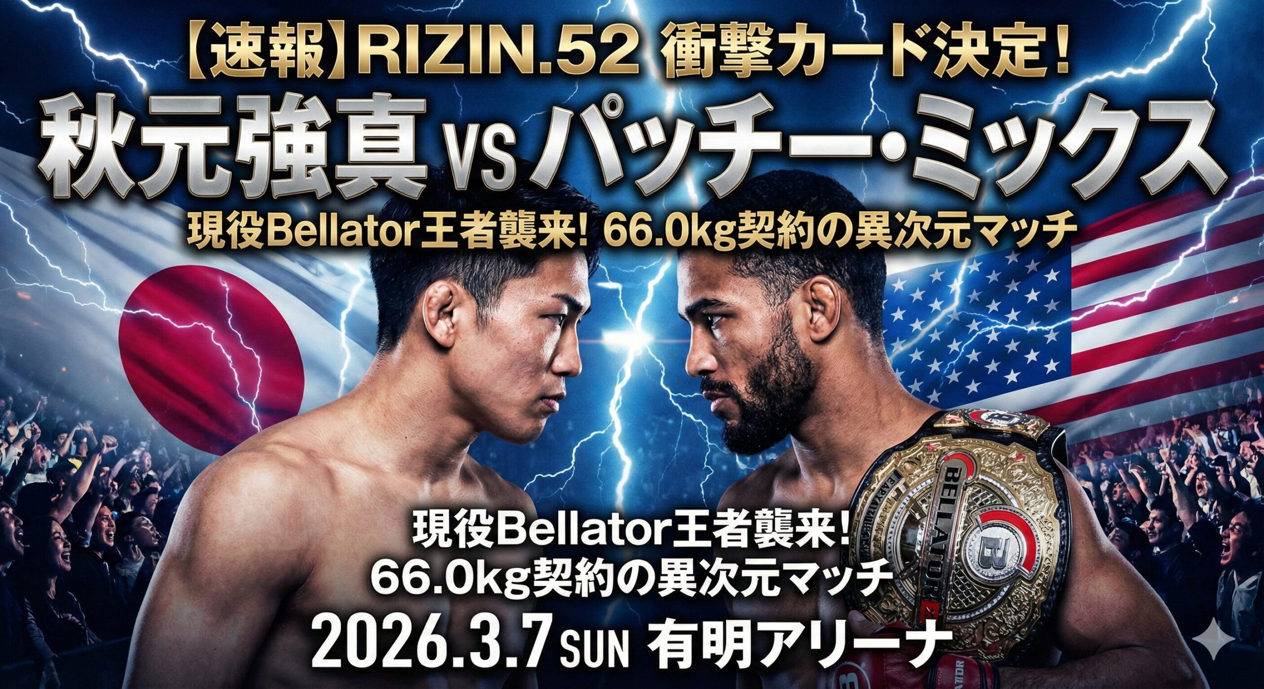 • RIZIN.52(3/7 有明)で「秋元強真 vs パッチー・ミックス」決定
