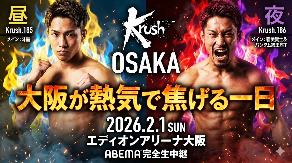 2026年2月1日(日)、エディオンアリーナ大阪でKrushの昼夜興行が開催されます。