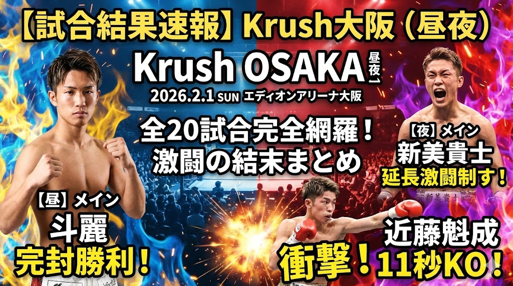 【結果速報】Krush大阪(2/1)|近藤魁成11秒KO!昼夜全20試合のリザルト一覧