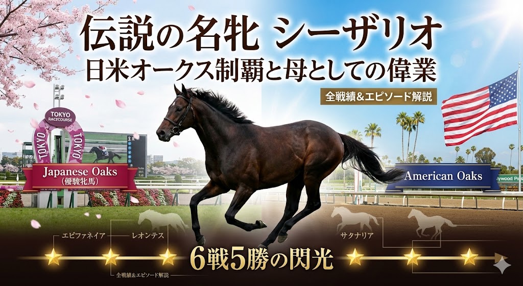 この記事では、たった6戦で伝説となった名牝・シーザリオの全戦績を表でまとめつつ、日米オークス制覇の裏側と、現在に続く「母としての偉業」を振り返ります。