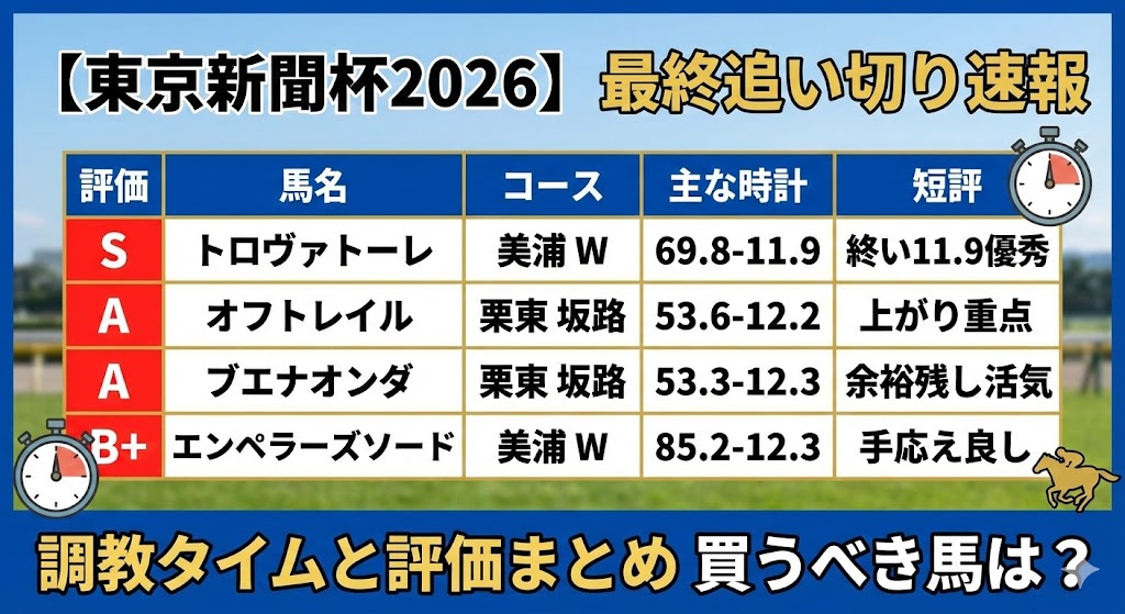 東京新聞杯2026 最終追い切り速報 調教タイムと評価まとめ