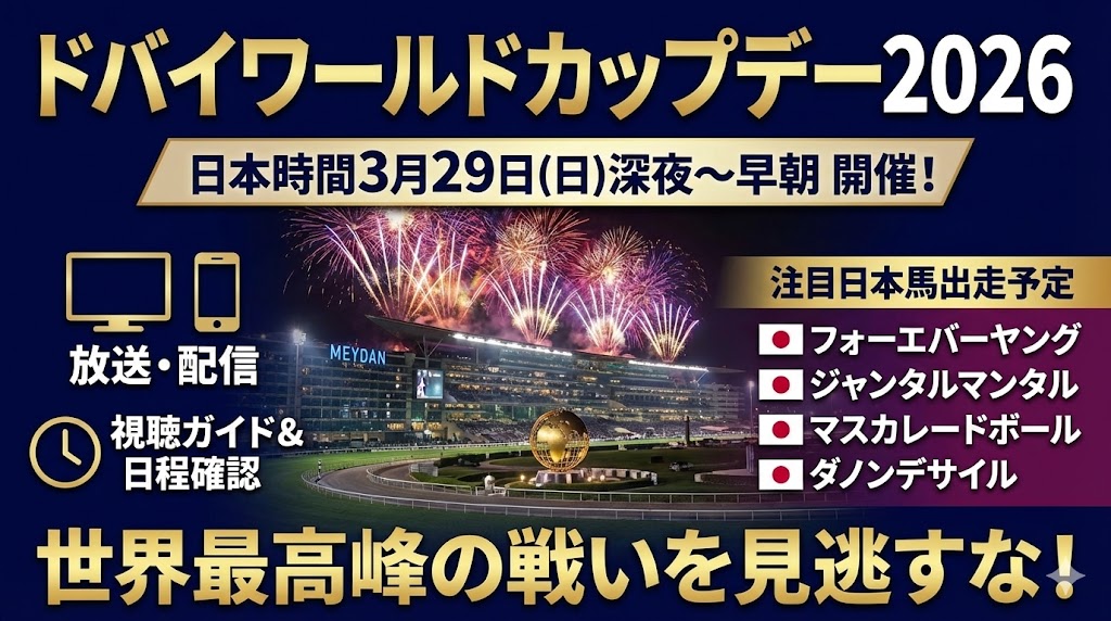 この記事では、ドバイワールドカップデー2026の日程・放送情報と、日本馬の出走予定を最新情報でまとめます。