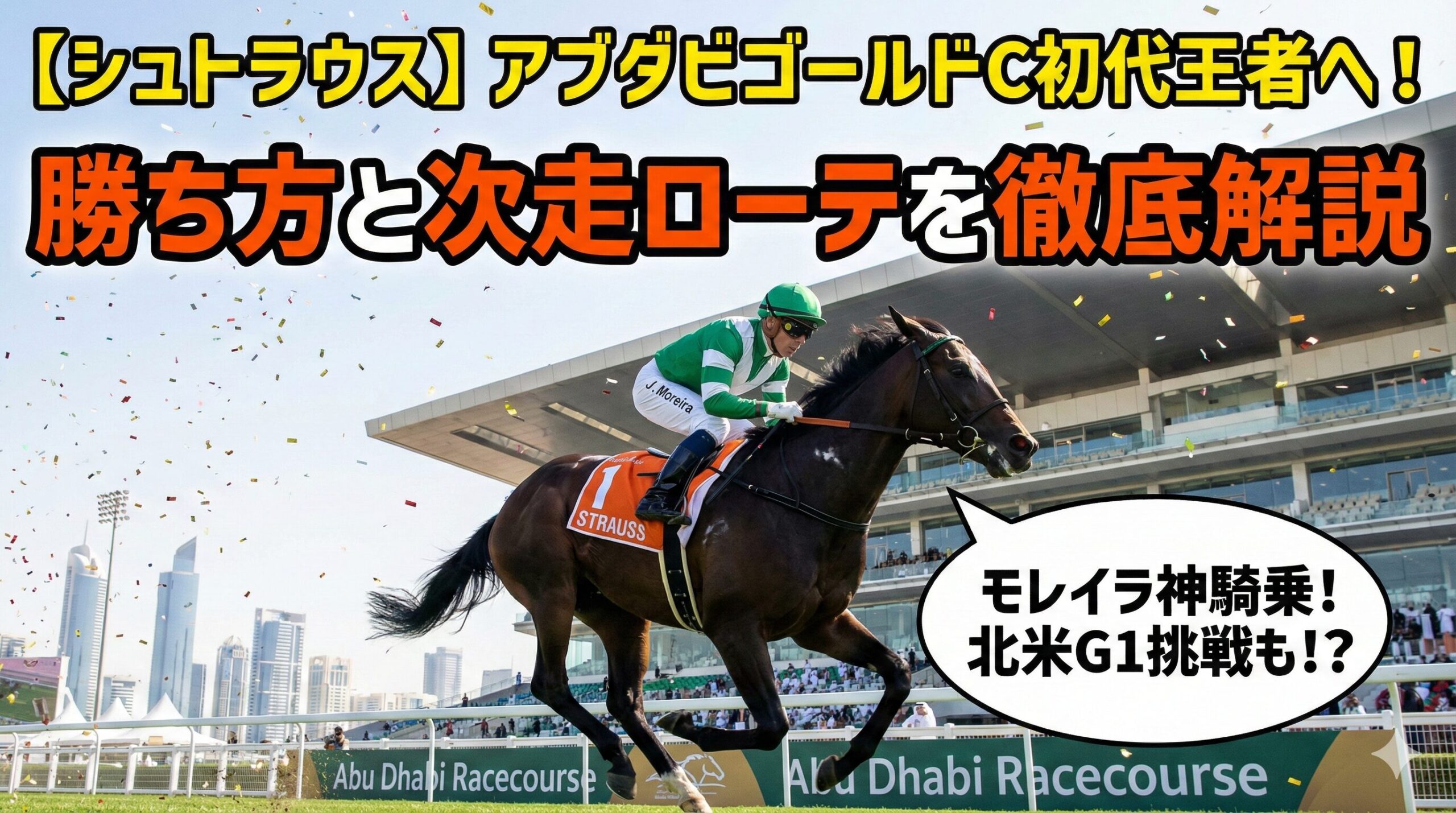 この記事では、UAE・アブダビゴールドカップで見事に初代王者となったシュトラウスのレース内容(着順、時計、展開)と、今後の選択肢について解説します。