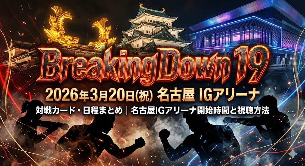ブレイキングダウン19は、2026年3月の祝日に名古屋で開催されます。会場は、愛知県体育館に代わり新設された話題の「IGアリーナ」です。