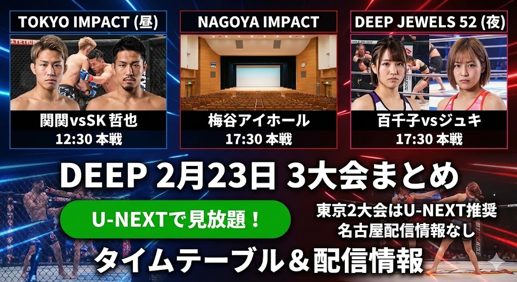 | TOKYO IMPACT (東京 昼) | 12:10 OP 12:30 本戦 | U-NEXT / YouTube ニューピアホール |