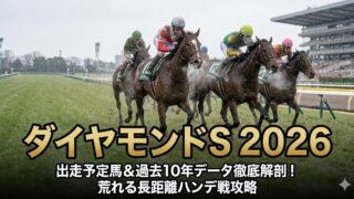 【順位・払戻金(配当)随時更新】2026年ダイヤモンドステークスのレース結果速報!確定した枠順一覧とハンデ、トップハンデのスティンガーグラスや軽斤量のサスツルギら有力馬の最終追い切り評価、予想アンケートまで完全網羅しています。
