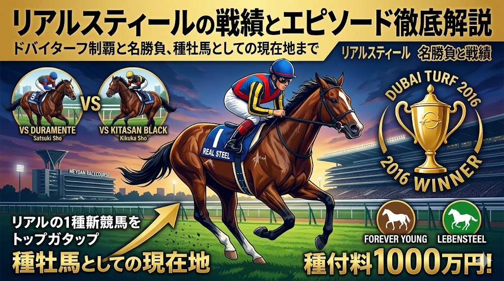 この記事では、リアルスティールの通算成績、印象深いレース、ファンの記憶に残るエピソード、そして2026年現在の種牡馬としての立ち位置まで、わかりやすく整理していきます。