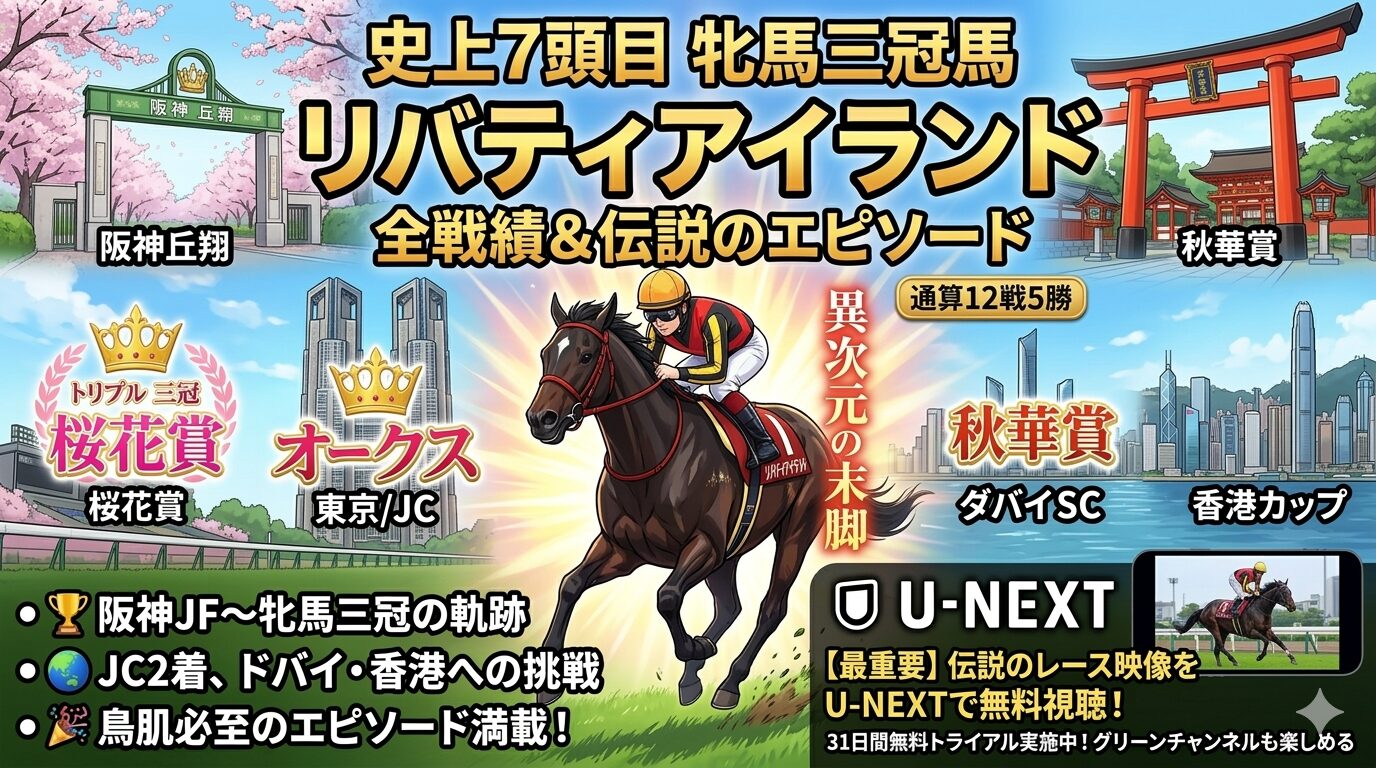 リバティアイランドは、戦績だけでも十分に名馬ですが、本当に印象に残るのはそのレース内容です。新馬戦の衝撃、阪神JFでの戴冠、桜花賞から秋華賞までの牝馬三冠、そしてジャパンカップや海外GIでの挑戦まで、常に高いレベルで命を懸けて戦い続けました。