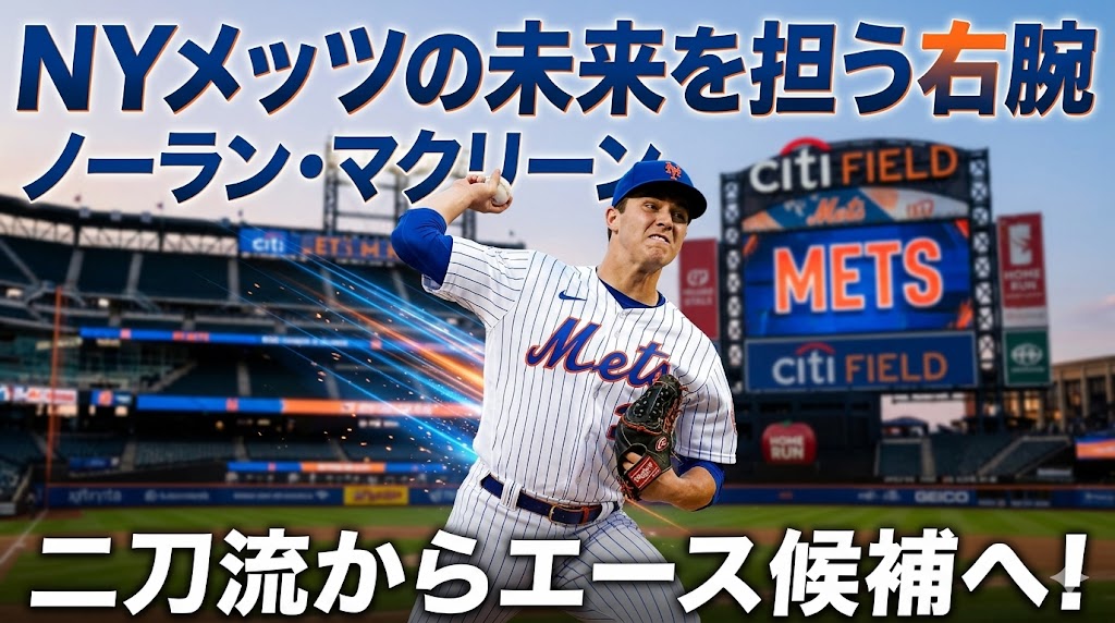 ノーラン・マクリーンをひとことで言えば、大学時代は二刀流で注目され、プロでは投手として急成長したメッツの次世代エース候補です。