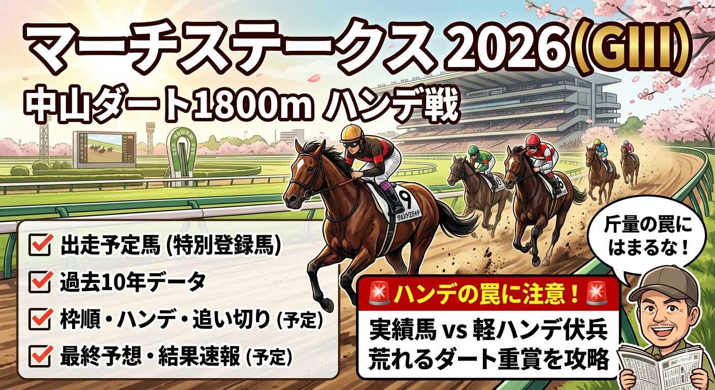 - 3月26日更新予定 ハンデ(斤量)および枠順発表後、出馬表を反映します。