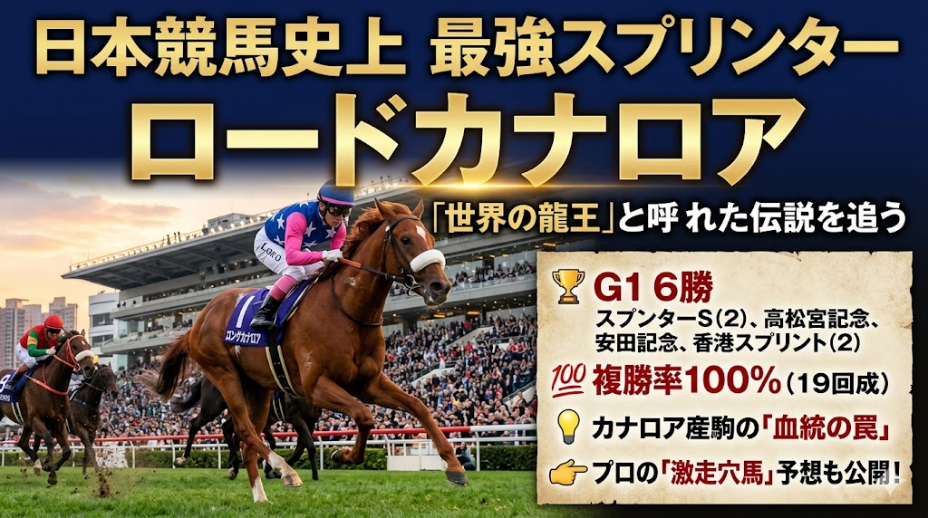 この記事では、ロードカナロアの公式記録と代表的なエピソードをわかりやすくまとめます。読み終えるころには、なぜ彼が今でも「日本競馬史に残る最強スプリンター」と語り継がれているのかがスッと理解できます。