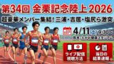 | 4月11日(土) | 第34回金栗記念選抜陸上中長距離大会2026 | 熊本 |