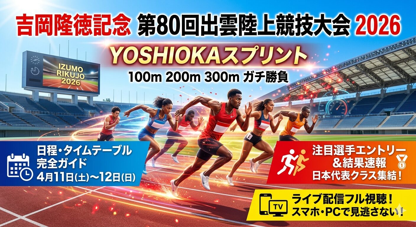 この記事では、国内スプリントシーズンの本格的な幕開けとなる「出雲陸上2026(日本グランプリシリーズ)」の最新情報をわかりやすく整理します。国内トップランナーの「初陣」を見逃さないよう、今のうちに視聴準備を整えておきましょう!