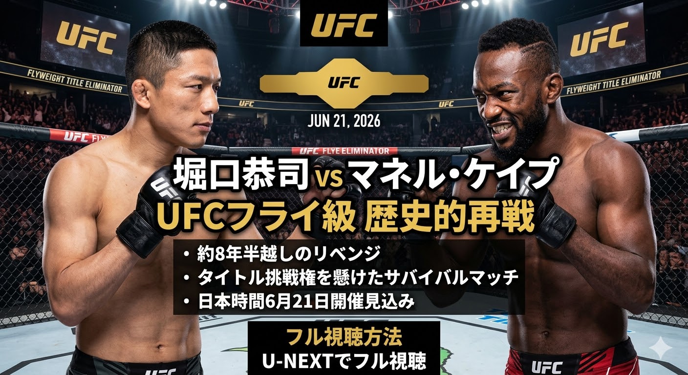 この記事では、日本の格闘技ファンが狂喜乱舞している「堀口恭司 vs マネル・ケイプ」の歴史的再戦について、過去の因縁から現在の立ち位置までをわかりやすく整理します。UFCフライ級の頂点を懸けた「RIZIN出身者同士の代理戦争」を見逃さないための視聴準備も併せて解説します!
