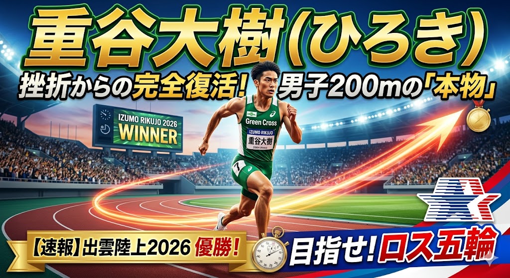 最終更新日:2026年4月11日(※【超速報】2026年出雲陸上での男子200m優勝のファクトと、ロス五輪へ向けた重谷大樹選手の「挫折と復活のストーリー」を深く掘り下げて追記しました)