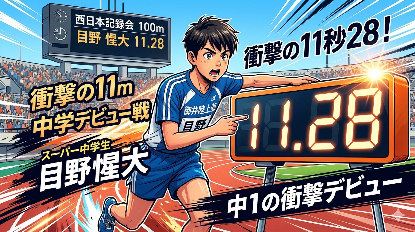 最終更新日:2026年4月20日(※4月19日に行われた西日本記録会にて、中学デビュー戦でいきなり「11秒28」を叩き出した驚愕の最新レース結果と、今後の展望を深く掘り下げて追記しました)