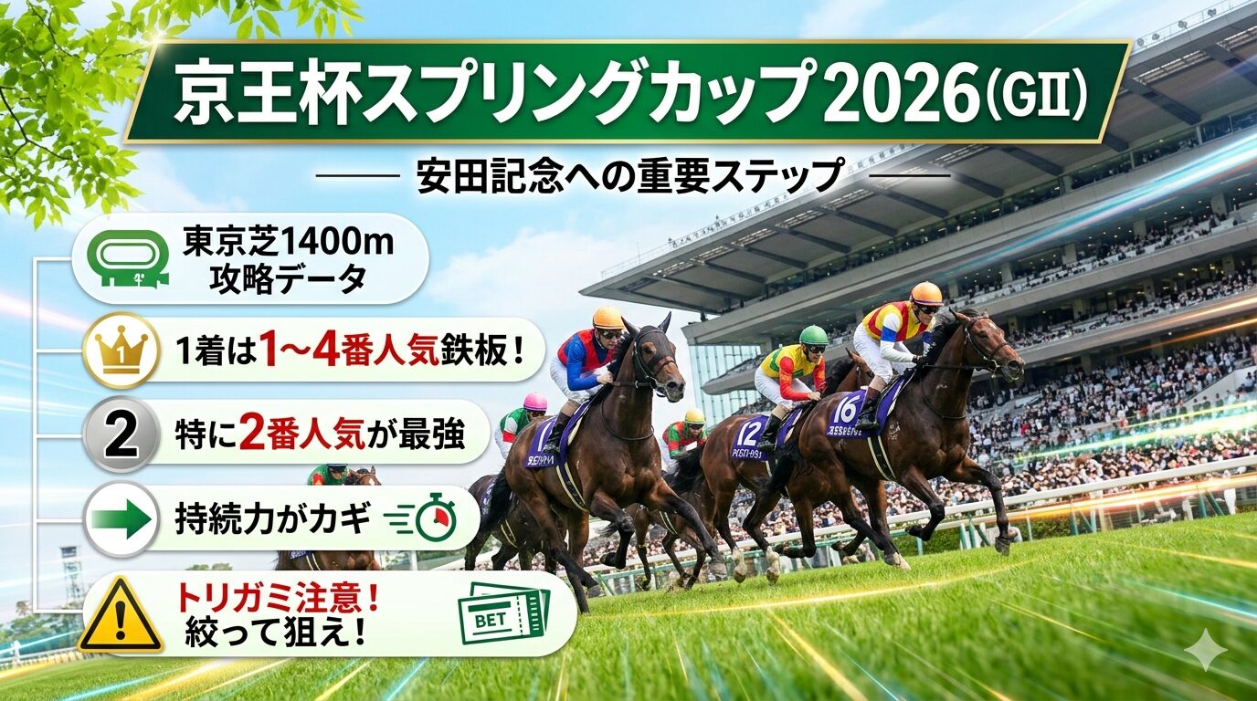 このレース、荒れそうな雰囲気出しといて「頭(1着)」は意外と人気馬がキッチリ勝つんや。せやけど、適当に人気馬から流したら「当たったのにマイナス(トリガミ)」で嫁さんに怒られるパターンやで。まずは出走想定と過去データを整理して、賢く儲ける戦略を練っていこか!