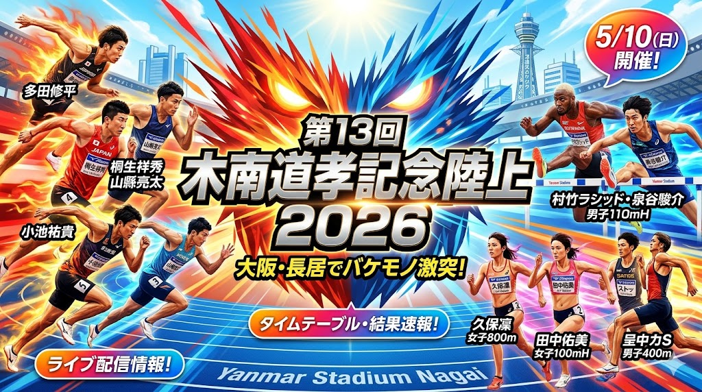 今年は男子100mもハードルも、女子の中距離も、日本選手権レベルのバケモン揃いや。地上波のテレビ中継がない可能性も高いから、今のうちにこの記事をブックマークして、当日のタイムテーブルと結果速報をガッチリ追っかけてや!