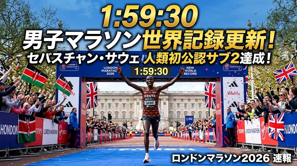 | 2026年4月26日 | ロンドンマラソン2026でセバスチャン・サウェが1時間59分30秒を記録し、男子マラソン世界記録更新として報じられました。 |