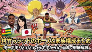 陸上選手 村竹ラシッドの家族構成まとめ|ボーボボ・ジョジョの元ネタから父・母まで徹底解説 陸上110mH村竹ラシッドのWiki経歴まとめ。世界陸上で話題のジョジョ立ちやボーボボ、ネテロ会長などポーズの元ネタと意味を解説。トーゴ出身の父と日本人の母を持つ家族構成やハーフとしてのルーツ、兄弟・結婚の噂まで徹底網羅します。 2025.09.15 陸上選手