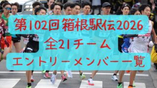 第102回箱根駅伝2026のエントリーメンバー16人を、全21チーム(20校+関東学生連合)まとめて確認できる一覧記事です。大会日程や出場校、チームエントリーと区間エントリーの違いも整理。推し大学の登録メンバーをチェックしたい方に役立つ内容です。