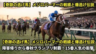 キタサンブラックの生涯戦績20戦12勝、G1七勝の内訳を時系列で完全解説。伝説の「天皇賞秋」出遅れからの逆転劇や、引退有馬記念の感動、北島三郎オーナーの「まつり」熱唱まで。最強の逃げ馬の記憶と記録を整理します。